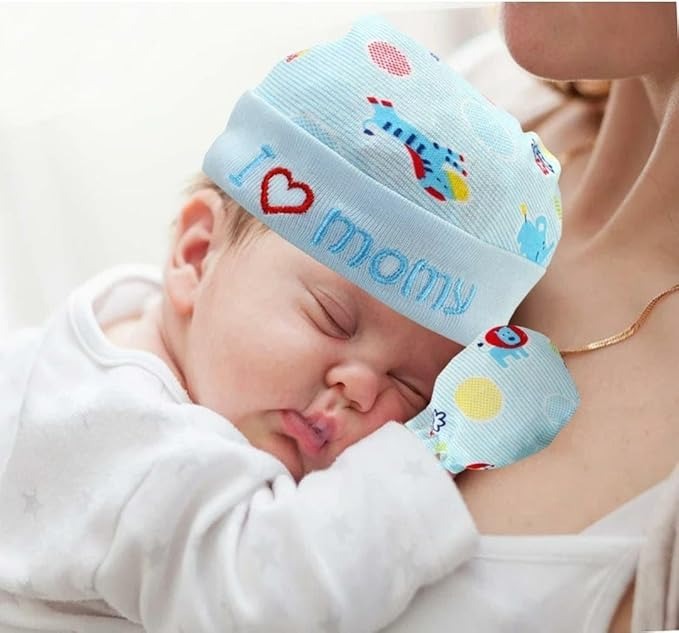 Baby Caps Mittens Booties Set 0-6M | Soft Cotton Newborn Combo